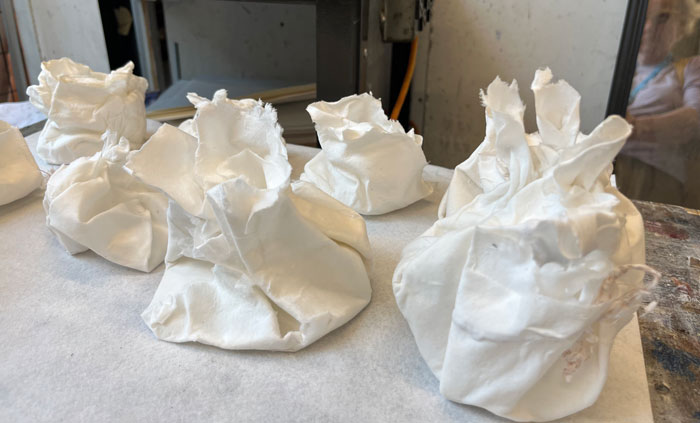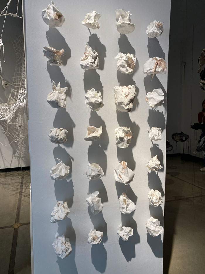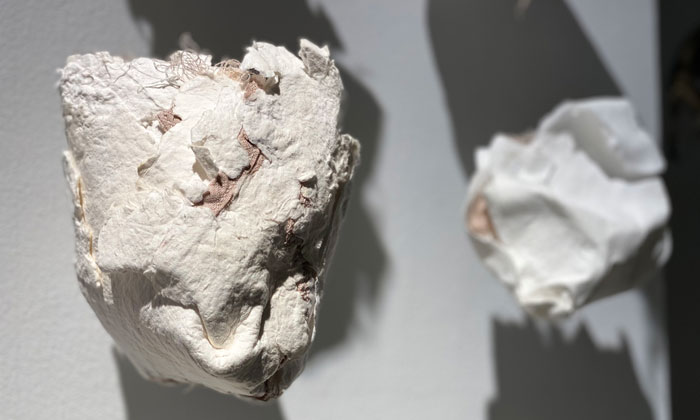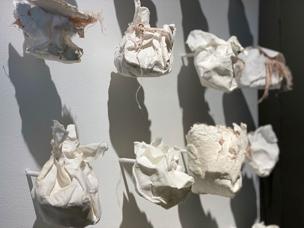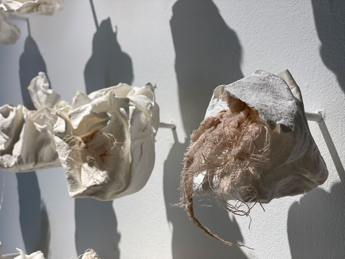 A Graveyard for Patterns are three dimensional pouches from handmade paper that incorporates thin threads from my old summer dress. This dress was my companion for over thirty-five years and a collector of memories.